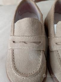 Mocassino elegante bimbo N° 22 di colore beige ,di camoscio con pianta larga come si vede in foto ,