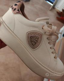 Vendo scarpe Blauer nuove per inutilizzo, tg. 37, lacci beige, logo brillantinato