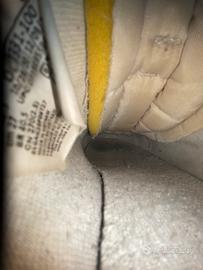 leggermente scucita sullo swoosh nike della scarpa destra.