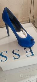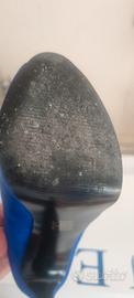 scarpe blu elettrico alte 12 cm comode grazie al plateau davanti che bilancia l'altezza usate una sola volta