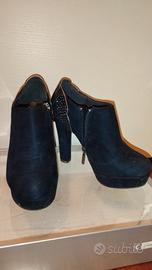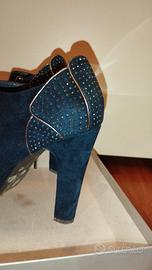 scarpe blu scuro con inserti dorati tacco 9 zeppa 2,5