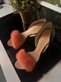 Vendo scatpe blumarine originali nere con pelliccia vera rosa pesca. Tacco sottile e di media altezza . Adatto a feste e eventi.