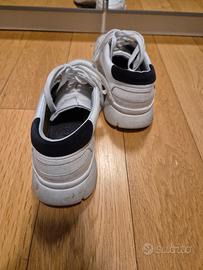 Vendo queste scarpe usate, sono ancora integre ma con visibili segni di usura (pieghe, piccoli graffi, usura generale)