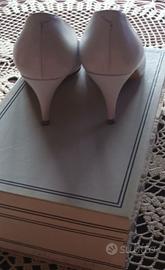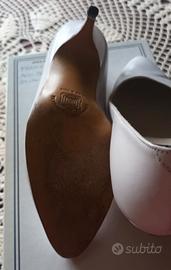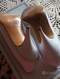 Scarpe artigianali Bolero, bianche vera pelle, suola vero cuoio, tacco 7 cm, numero 33.