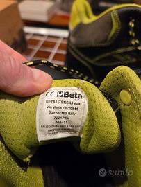 vendo scarpe antinfortunio beta, modello 7221pek, colore nero/giallo, taglia EU43, materiale gomma, pelle e poliestere., punte e tallone rinforzati, marcatura CE. suole perfette. nuove mai utilizzate. euro 30 vendo scarpe antinfortunio cofra evanit, colore nero, taglia EU42 UK8, materiale gomma e pelle, punte e tallone rinforzati, marcatura CE 1893. suole perfette. utilizzate pochissimo. appena igienizzate. euro 20