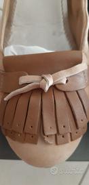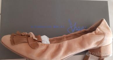 scarpe color cammello con tacco basso, della Tosca Blu , in camoscio, nuove con scatola originale, lateralmente elasticizzate.