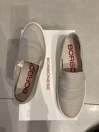 vendesi scarpe tipo mocassino, da donna, marca Borbonese, numero 37, ottimo condizioni, colore grigio, usate un paio di volte, in scatole originale.