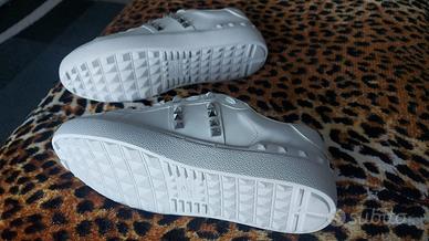 Vendo scarpe bianche con borchie argentate, taglia 40, stile Valentino.
