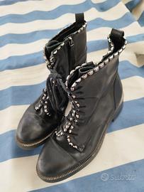 - anfibi con borchie sui perimetri. stringati e cerniera. marca Albano numero 38. €12
