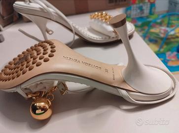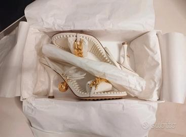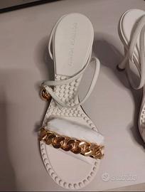Vendo scarpe NUOVE con etichette e confezione originali come da foto Bottega Veneta taglia 38 mod. Dot Sandal Lounge Nappa Strong. Prezzo di listino 1200 euro, vendo a 300 euro.