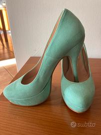 Vendo scarpe décolleté n’37, marca Divine Follie, color verde salvia, tacco 12, usate soli una volta.