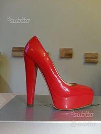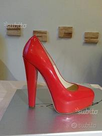 Stupende scarpe originali Brian Atwood TAGLIA 35 COME NUOVE e con tacchi di ricambio. In pelle verniciata Rossa Decolletè con plateau 140 mm. "Red Blason". Ritiro in zona gratuito, o spedizione in tutta Italia con corriere espresso a +8 euro. Contattatemi per informazioni. Massima serietà, no perditempo.