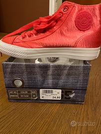 Vendo sneakers alte Wampum in raso, color corallo estive e leggere numero 38 mai indossate e nella loro scatola originale, avevo tolto il cartellino che ora non trovo piu ma sono praticamente nuove