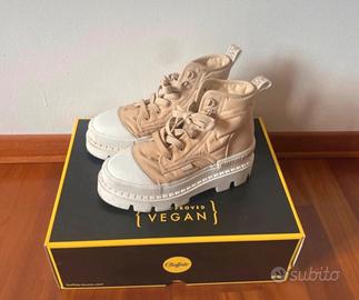 Sneakers alte Buffalo, colore beige/sabbia con suola chunky bianca.
