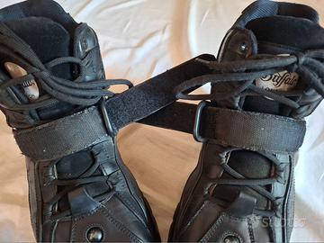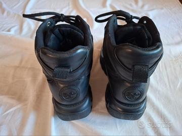 Scarpe Buffalo London Sneakers Alte Modello 1348 Black Taglia 42. Le scarpe sono ancora in buono stato ad eccezione del velcro dell'allacciatura anteriore che, come visibile in foto n. 6, risulta scucito lungo i lati lunghi. Integre invece le cuciture sui lati corti delle fascie.