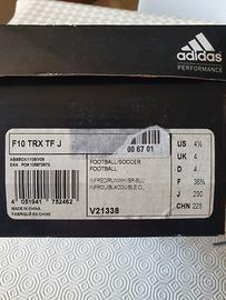 Come da titolo, vendo scarpe da calcetto Adidas F10 TRX TF J originali (taglia 36 2/3), nuove ed ancora inscatolate. Pagamento a mezzo Paypal (con aggiunta delle commissioni) o bonifico bancario.