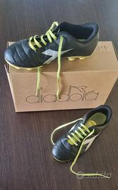 Diadora Brasil - nella versione nera con fondo giallo fluo e baffo Nike bianco. Progettato per terreni compatti, questo scarpino è realizzato in SuprellSoft resistente all’acqua.