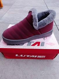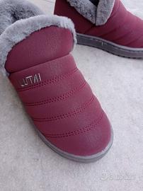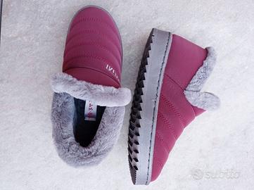 Pantofole calde invernali con l'interno in peluche morbido e confortevole. Suola in gomma antiscivolo. Rivestimento esterno in pelle ecologica sintetica traspirante.