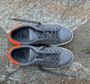Scarpe Calvin Klein di altissima qualità , taglia europea 41 indossate solo 1 volta . Si trovano in perfette condizioni come potete vedere dalle foto elencate .Sono grigie,nere e arancioni . Calzano perfettamente e si abbinano bene in ogni occasione .