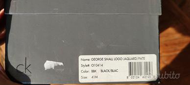 Vendo per inutilizzo, scarpe Calvin Klein george small logo jacquard pate nero lucido, utilizzate soltanto in un occasione. Le scarpe sono pari al nuovo, pagate più di 140€. Numero 41 ma vestono come un 42. Ancora con scatola originale e imballo. Visto e piaciuto