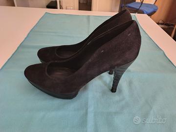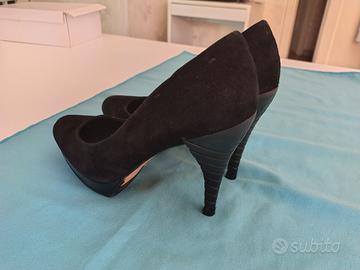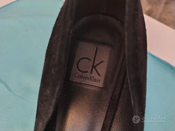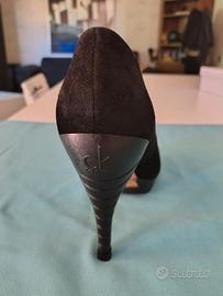 Scarpe Decolletè Calvin Klein nere, effetto scamosciato. Tacco 11. Utilizzate poco, in ottime condizioni.