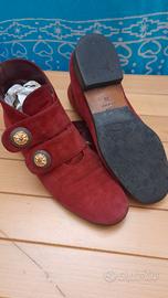 Scarpe alla caviglia camoscio col. Bordeaux/ciclamino N.36 NANDO MUZI con guarnizione laterale in metallo dorato mai indossate