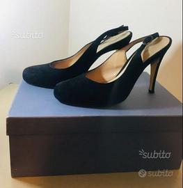 Scarpe camoscio nero aperte dietro, nuove, tacco a spillo 8 cm