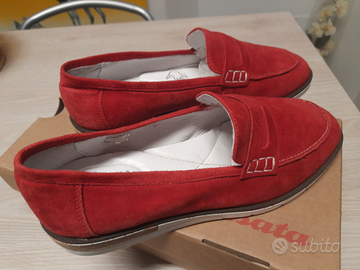 Mocassini donna in camoscio rosso tg.37 soletta interna soft in pelle mai messe marca Bata