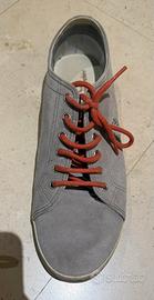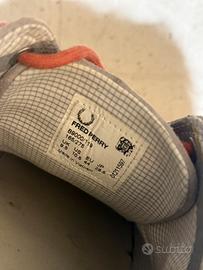 Vendo scarpe da uomo originali Fred Perry in camoscio, leggere, colore grigio con lacci arancioni.