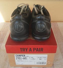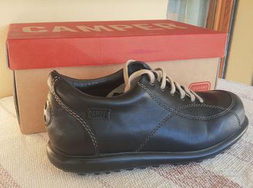 Scarpe CAMPER nere, Taglia 36, modello base (Pelotas Ariel), con tomaia in pelle e fondo in gomma a sfere.