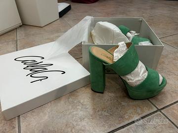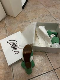 Sandalo estivo tacco alto usato pochissimo di camiscio di colore verde. Taglia 38
