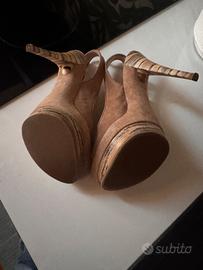 Vendo scarpe numero 38 di Casadei originali, colore sabbia in camoscio con tacco e plateau 15,4 cm centimetri sfumato con blu e beige Tenute molto bene e sempre attuali