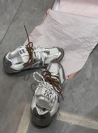 New Balance x MIU MIU NB 530 New Year Collection - Scarpe basse casual da donna con punta tonda e lacci (Argento) Taglie: 39-41 Colore: Argento
