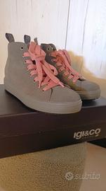 Vendo scarpe casual/sportive n. 38 pari al nuovo (provate una sola volta, suola perfetta). Colore verde militare, zip laterale, lacci rosa salmone. Scatola originale. Non spedisco. No perditempo.