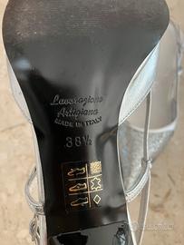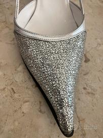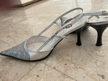Scarpa cerimonia argentata tacco 6 cm, indossata un’unica volta, numero 38,5