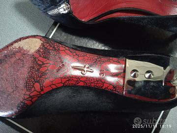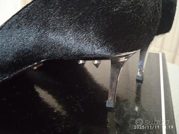 Scarpe Cesare Paciotti, cavallino nero tacco in metallo, fondo cuoio