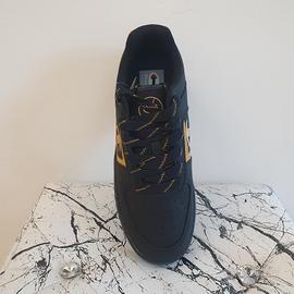 Domina le strade questo inverno con le iconiche Champion. Queste sneaker nere sfoggiano audaci inserti dorati che catturano l'attenzione, combinando il comfort leggendario Champion con un tocco di lusso. Perfette per un look sportivo ma raffinato.