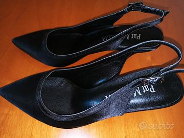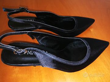 Scarpe chanel raso nero, tacco cm.8, n.37, mai indossate