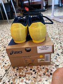 scarpe chiodate asics hyper md 8 usate per 2/3 mesi (costo 75€ ma avute con uno sconto a 65€) taglia europea 39.5, condizioni perfette tranne la suola che è un pó annerita. comprese di scontrino, scatola originale e la chiave per chiodi.