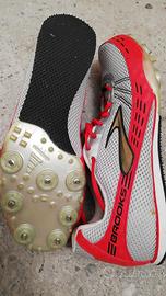 Vendo paio di scarpe chiodate per pista di atletica leggera (tutti i chiodini sono già inseriti nella suola) adatte per discipline velocistiche. Numero 44 ma vestibilità piccola. Ottimo stato, non presentano alcun segno di usura. Marca Brooks Running. Vendo per inutilizzo, ottime per tutte le stagioni e superfici.
