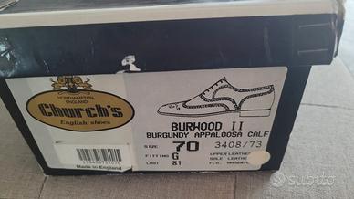 Vendo eleganti scarpe Church’s originali modello BURWOOD II, uno dei modelli iconici del marchio inglese, realizzate in pelle Burgundy Appaloosa Calf di altissima qualità.