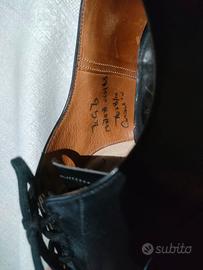 Vendo eleganti scarpe Church’s Consul Oxford cap toe, in pelle nera, originali anni ’80, prodotte a Northampton (Inghilterra) prima del periodo Prada. Scarpe da uomo di altissima qualità artigianale, con tomaia in pelle di vitello (calf leather), fodera interna in pelle marrone e suola in cuoio. Indossate pochissime volte, condizioni eccellenti, nessun difetto o deformazione. •Modello: Consul •Forma (last): 173 •Misura: UK 8½ G (≈ 43 IT) •Materiale: pelle di vitello nera •Suola: cuoio •Chiusura: stringhe (5 fori) •Made in England •Epoca: anni 1980 • Scatola: sostitutiva (non originale Church’s) Ideali per cerimonie, lavoro o collezionisti di calzature inglesi vintage.