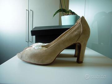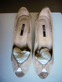 Scarpe Cinti open toe in suede colore beige, taglia 40. Indossate poche volte causa errore mio nella scelta del numero.