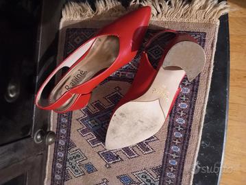 scarpe classiche aperte dietro, tacco basso, numero 38,colore rosso , vedi bene foto
