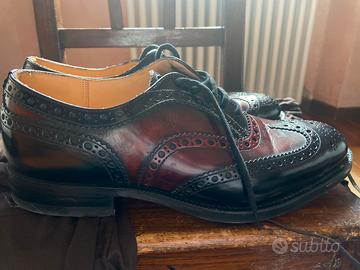 Classiche scarpe stringate con dettagli brogue in pelle sfumata bicolore, suola in cuoio e tacco antiscivolo in gomma.