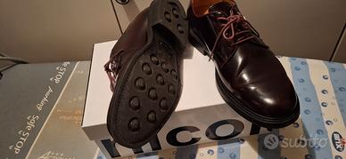 Eleganti scarpe stringate da uomo Nicola Benson. - Tomaia in pelle lucida color marrone scuro. - Lacci in tinta. - Suola in gomma. - Fodera interna in pelle.