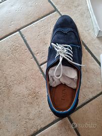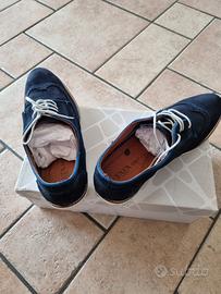 Vendo per inutilizzo scarpe classiche tata da uomo in camoscio colore blu con suola bianca. Lacci bianchi + lacci di ricambio blu. Scatola originale. Le scarpe non sono mai state indossate lo si nota dalle condizioni perfette e dalla suola senza alcun segno.
