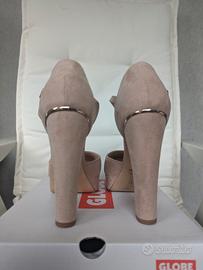 Scarpe col tacco 13 cm e plateau 2.5 cm, marca Primadonna colore rosa antico con inserti color oro. Cinturino alla caviglia. Indossate poche volte. Taglia 39