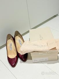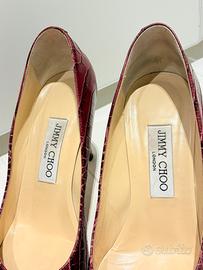 Favolose scarpe col tacco Jimmy Choo originali, in pelle stampa coccodrillo color vinaccia burgundy. Numero 37 1/2.