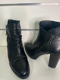 N 39 nere tacco 10 cm, suola nuova , in vera pelle morbida